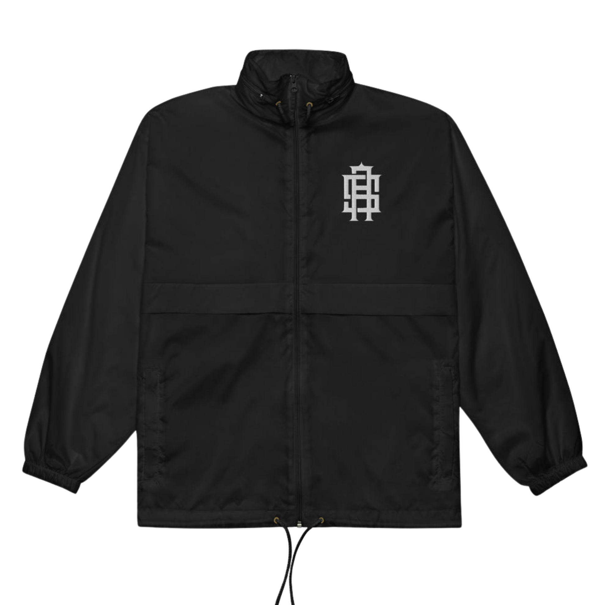 • Hood with a drawstring, zipped closure, elastic cuffs and hem