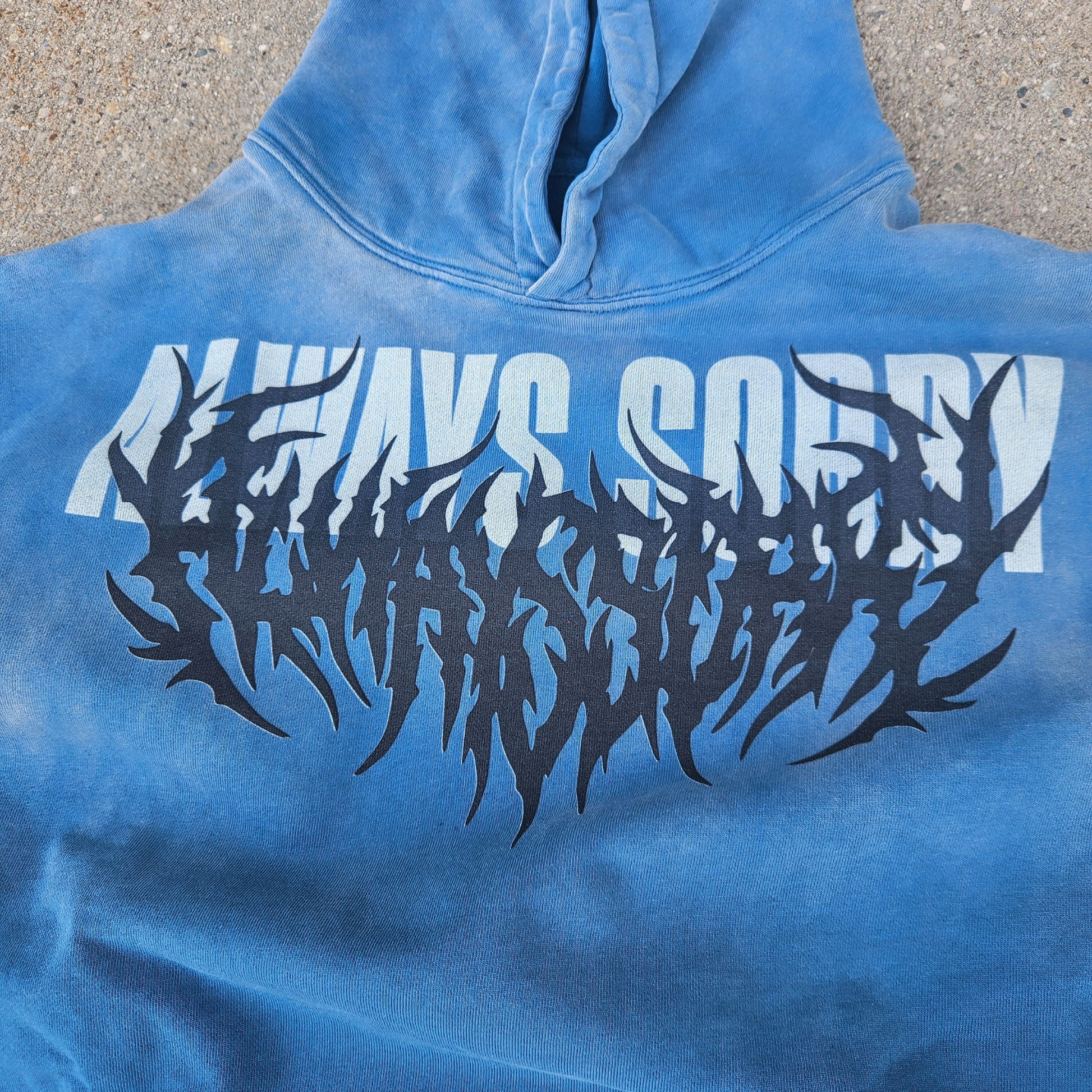 Cut from heavyweight 100% cotton and garment-washed for a worn-in feel, this hoodie balances structure and comfort without chasing trends. The loose, drop-shoulder fit gives it presence without restriction, while the oversized front graphic anchors the piece with quiet confidence.